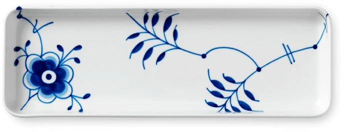 Den unge designstuderende, Karen Kjældgård-Larsen, præsenterer Royal Copenhagen for en dristig idé: En dramatisk nyfortolkning af det klassiske Musselmalede stel. Hendes design bryder alle traditioner samtidig med, at det håndmalede håndværk er bevaret. Forstørrelsen af det klassiske mønster skaber et ekstraordinært og enestående udtryk, hvor det oprindelige mønster stadig er genkendeligt. Musselmalet Riflet er genfødt. Med denne genfødsel har mønstret fra 1775 gennemgået en udvikling, og en moderne klassiker er født. Dette enkle og elegante fad er både smukt og funktionelt. Brug det til servering eller dekoration. Det Blå Mega Riflede mønster giver fadet et moderne udtryk, som passer ind i ethvert af husets rum.