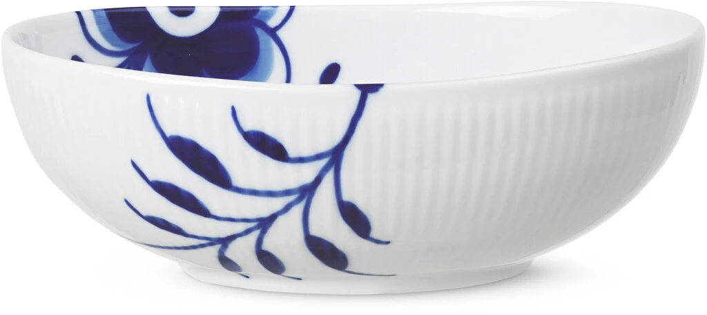 Stellet er født af en modig nyfortolkning af det ikoniske Musselmalet Riflet og fortryller med sine grafiske og forstørrede sektioner af det musselmalede mønster. Siden Blå Mega Riflet blev designet i 2000 er stellet vokset sig til en ny klassiker inden for dansk design, og det iøjnefaldende stel er smukt i sig selv og i kombination med særkollektionen Mega Rose eller andre Royal Copenhagen stel.