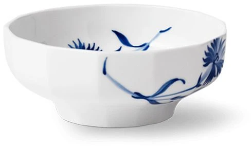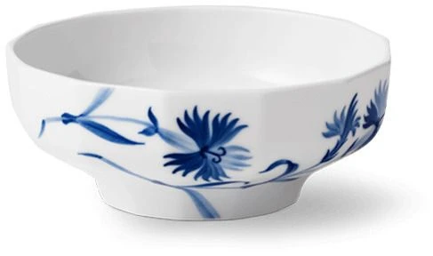 blomst-serien er karakteriseret ved sin enkle og kantede form, som blødes op af de unikke og livlige tredimensionelle blå penselstrøg i dekorationerne. Skålens sider er omkranset af en blomsterkrone gjort ud af duftnelliker, der bryder med skålens bløde, reflekterende facetter. Dekorationen pryder både skålens inder- og yderside, og er synlig, uanset fra hvilken vinkel skålen betragtes. Skålens form er inspireret af traditionelle asiatiske stentøjsskåle og får et diskret løft med en næsten usynlig søjlebase. Søjlebasen er også en detalje, der er bevaret fra det klassiske Blå Blomst-stel, hvor de opretstående elementer alle hvilede på en mindre piedestalfod.