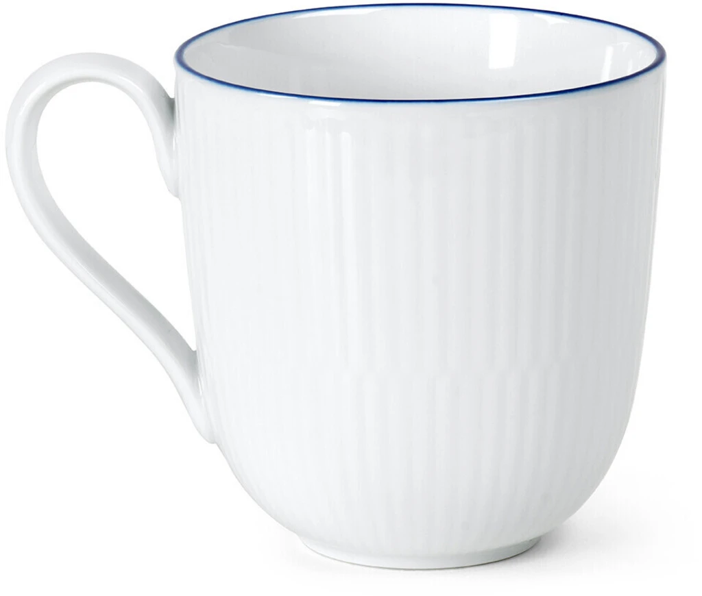 Krussets skønhed fra Blueline findes i sin enkelhed: det hvidriflede porcelæn skitseret med en håndmalet tynd blå linje på toppen. Det minder os om tidlige morgener på et roligt landsted. Hertil det iøjefaldende stempel i bunden af kruset, som skaber en smuk variation af det velkendte samtidig med det står i fin kontrast til det enkle udtryk. Kruset er perfekt til både hverdag og særlige anledninger og kan nemt kombineres med andre af Royal Copenhagens kollektioner.