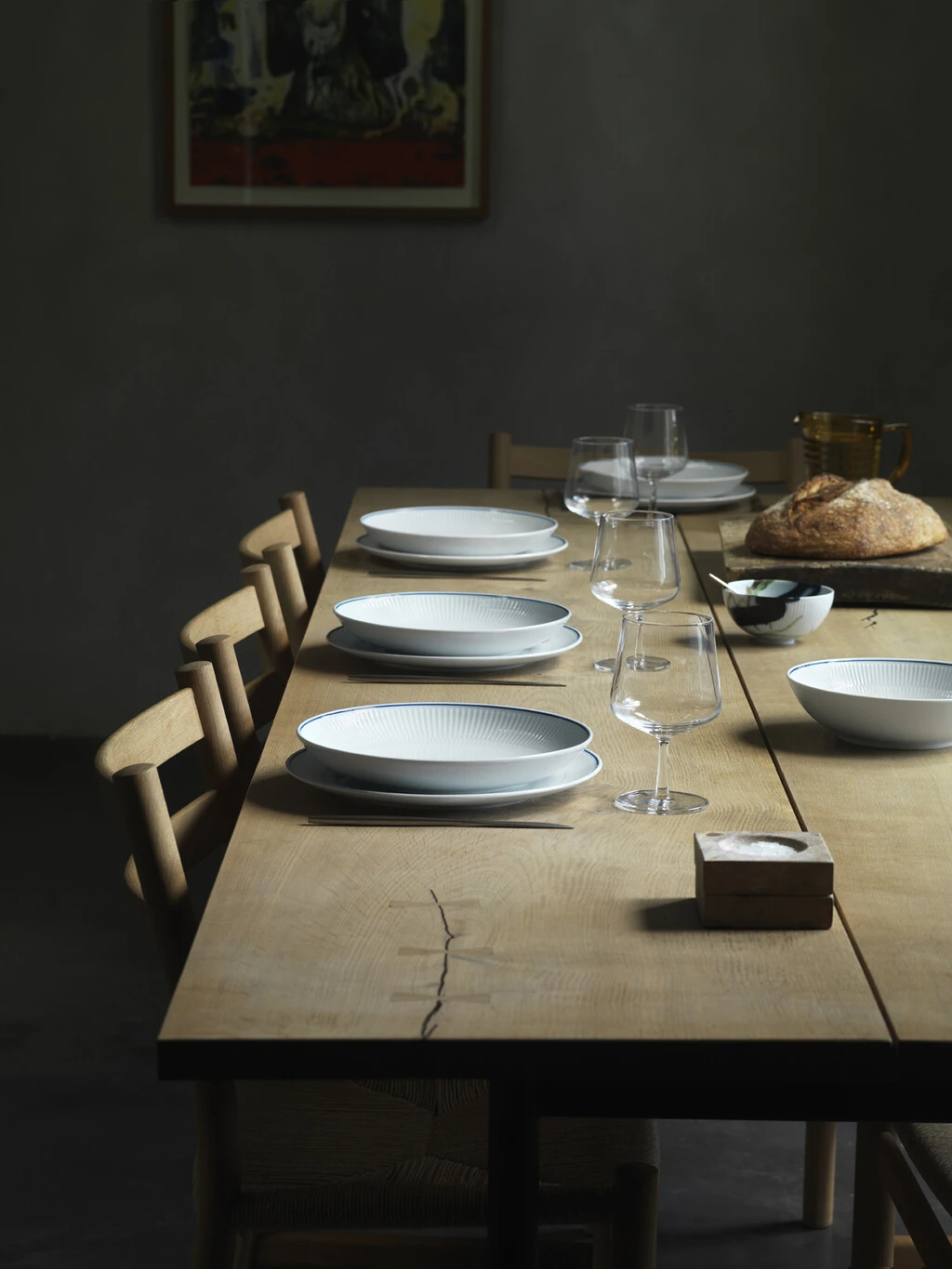 Royal Copenhagen præsenterer den seneste fortolkning af de tidløse rifler og de fine blå penselstrøg – nu i skikkelse af stellet Blueline.