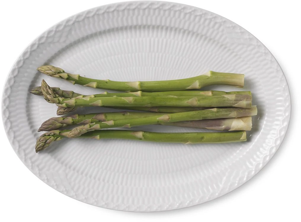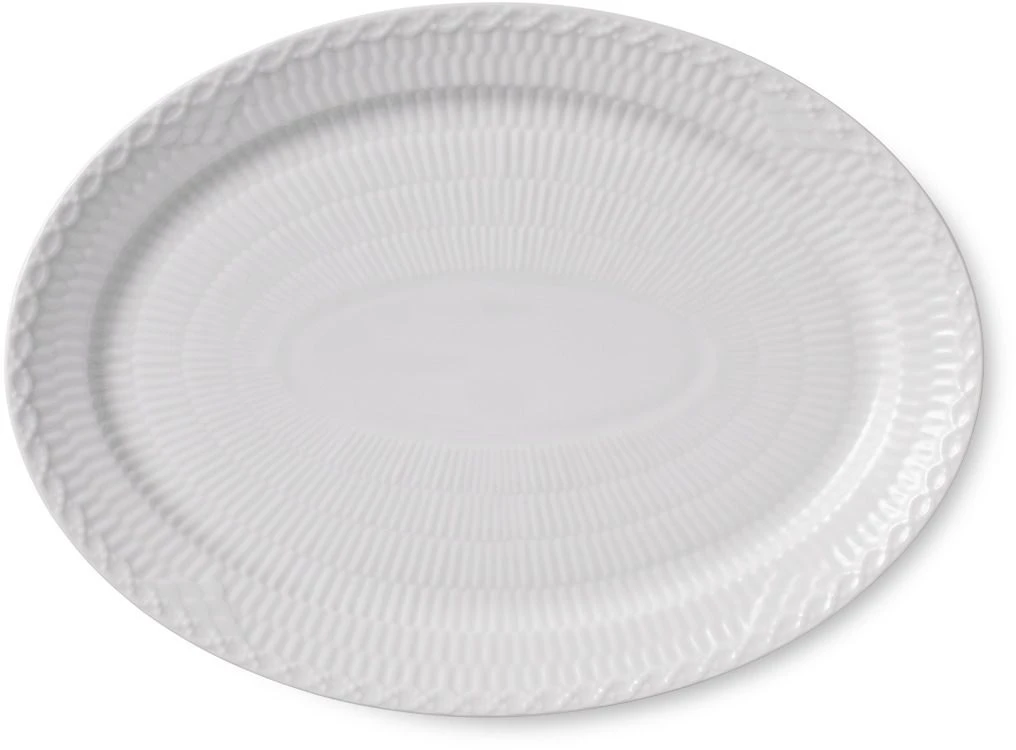 Slutningen af det 19. århundrede var en periode med udvikling og vækst generelt, hvad angår Royal Copenhagens porcelæn. På det tidspunkt redesignede den kunstneriske direktør det Musselmalede mønster og introducerede flere nye tiltag, herunder Hvid Halvblonde. Det Riflede design havde fået tildelt en elegant halvblonde langs kanten for at give stellet et romantisk udtryk. Dekorativt, men simpelt. Hver eneste steldel er glaseret i hånden. Sødt og yndefuldt.