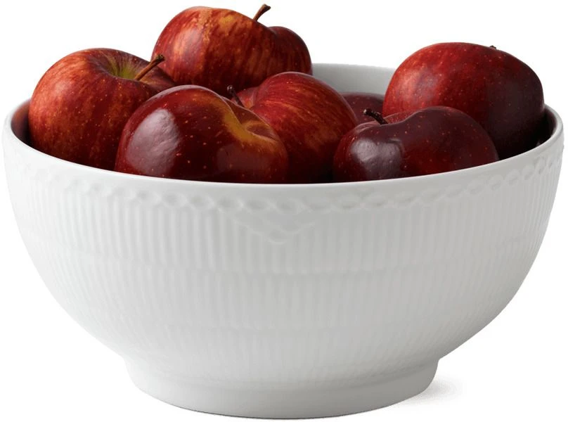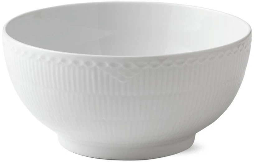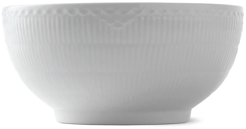 Slutningen af det 19. århundrede var en periode med udvikling og vækst generelt, hvad angår Royal Copenhagens porcelæn. På det tidspunkt redesignede den kunstneriske direktør det Musselmalede mønster og introducerede flere nye tiltag, herunder Hvid Halvblonde. Det Riflede design havde fået tildelt en elegant halvblonde langs kanten for at give stellet et romantisk udtryk. Dekorativt, men simpelt. Hver eneste steldel er glaseret i hånden. Sødt og yndefuldt.