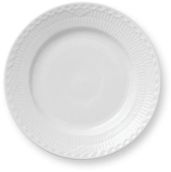 Slutningen af det 19. århundrede var en periode med udvikling og vækst generelt, hvad angår Royal Copenhagens porcelæn. På det tidspunkt redesignede den kunstneriske direktør det Musselmalede mønster og introducerede flere nye tiltag, herunder Hvid Halvblonde. Det Riflede design havde fået tildelt en elegant halvblonde langs kanten for at give stellet et romantisk udtryk. Dekorativt, men simpelt. Hver eneste steldel er glaseret i hånden. Sødt og yndefuldt.