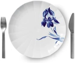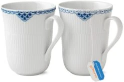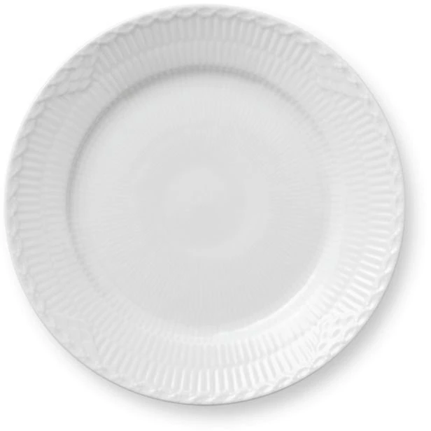 Slutningen af det 19. århundrede var en periode med udvikling og vækst generelt, hvad angår Royal Copenhagens porcelæn. På det tidspunkt redesignede den kunstneriske direktør det Musselmalede mønster og introducerede flere nye tiltag, herunder Hvid Halvblonde. Det Riflede design havde fået tildelt en elegant halvblonde langs kanten for at give stellet et romantisk udtryk. Dekorativt, men simpelt. Hver eneste steldel er glaseret i hånden. Sødt og yndefuldt.