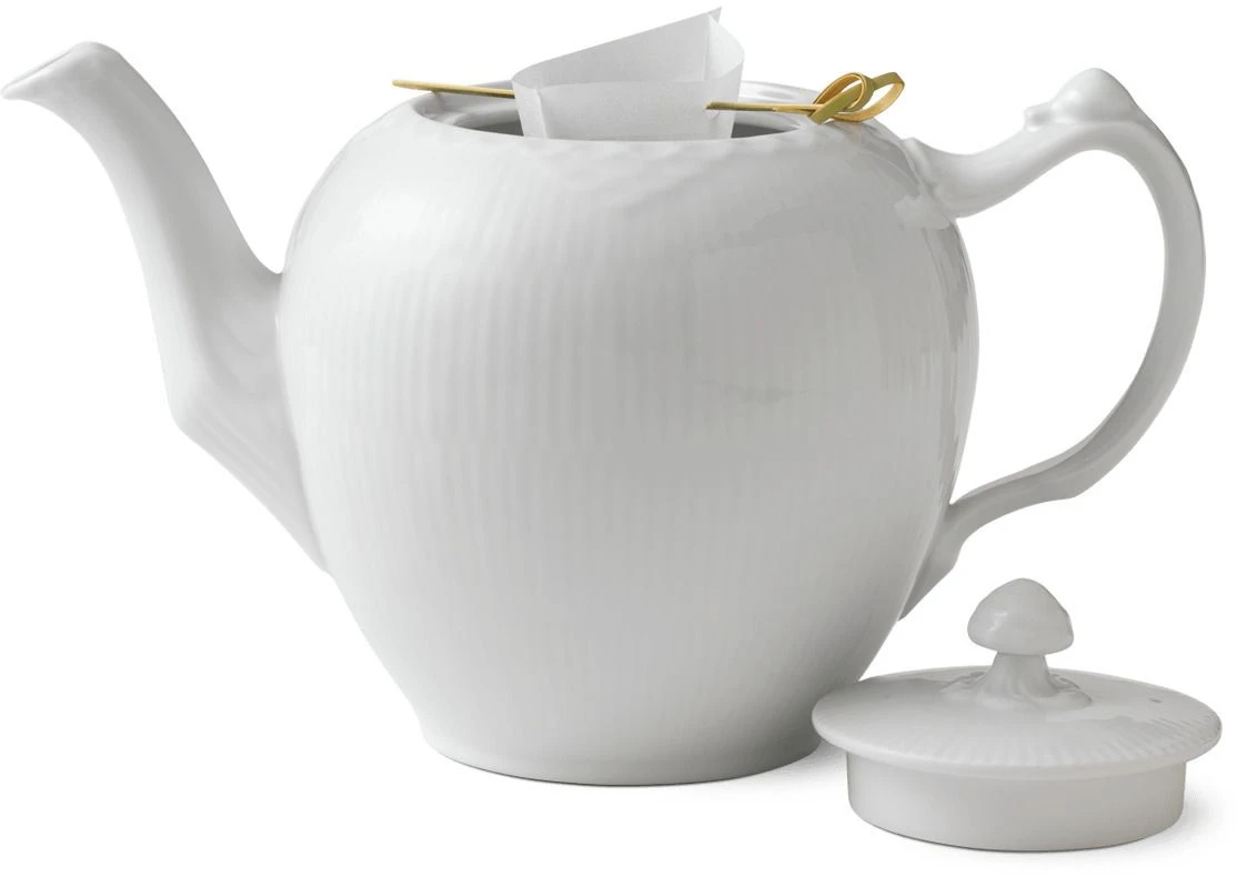 Slutningen af det 19. århundrede var en periode med udvikling og vækst generelt, hvad angår Royal Copenhagens porcelæn. På det tidspunkt redesignede den kunstneriske direktør det Musselmalede mønster og introducerede flere nye tiltag, herunder Hvid Halvblonde. Det Riflede design havde fået tildelt en elegant halvblonde langs kanten for at give stellet et romantisk udtryk. Dekorativt, men simpelt. Hver eneste steldel er glaseret i hånden. Sødt og yndefuldt.