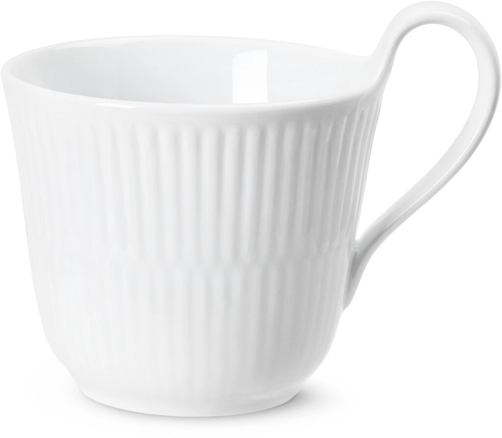 Dette lille Hvid Riflede Højhankskrus er den perfekte tilføjelse til brunch- eller eftermiddagstebordet. Dens hvide overflade er elegant dekoreret af de klassiske rifler, som har været en signatur for Royal Copenhagen siden 1775.