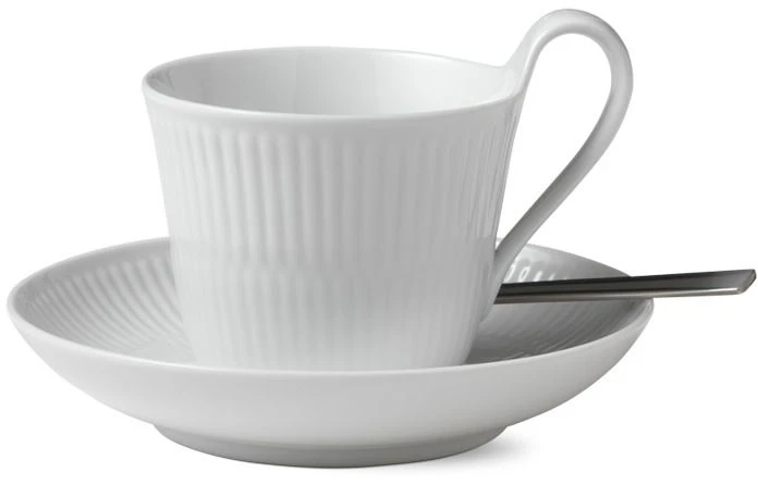 Hvid Riflet fortæller historien om kongeligt porcelæn og håndværk i en minimalistisk og nutidig stil. Resultatet? En moderne klassiker. Stellets rene hvidhed og enkle design gør det perfekt til at mikse og matche med andre riflede stel. Hvid Riflet er ideelt som hverdagens spisestel i moderne hjem, hvor man ikke går på kompromis med kvaliteten. Det er ren elegant enkelhed. Det grundlæggende design er identisk med Musselmalet Riflet, Blå Mega Riflet og Riflet Signatur, og lader sig fint blande med andre stel – men på egen hånd er det også elegant og iøjnefaldende.
