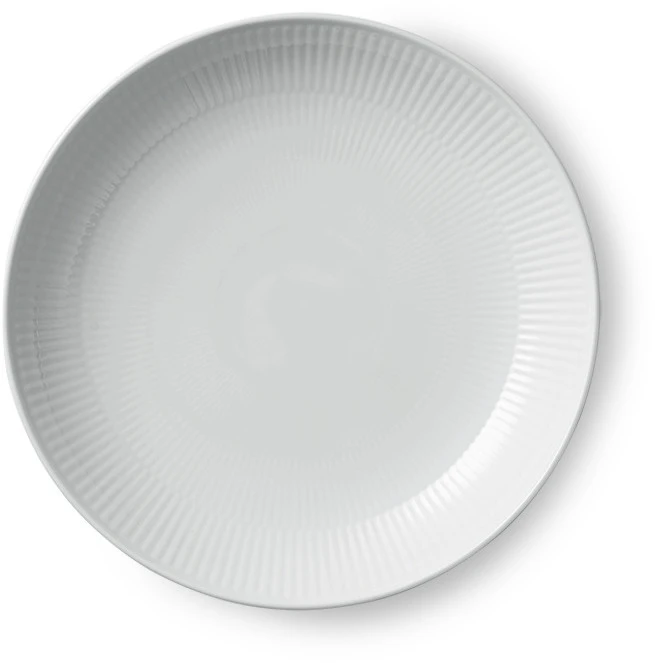 Denne Hvid Riflet Tallerken på 25 cm fungerer med sine høje kanter samtidig som en lav skål, og størrelsen gør den velegnet som middagstallerken. Med sit organiske formsprog tilfører tallerkenen et kontemporært udtryk til andre serveringsdele fra Hvid Riflet eller i kombination med steldele fra et af Royal Copenhagens håndmalede stel. Hvid Riflet er skabt fra grundformen på Musselmalet Riflet og er et stel, der er minimalistisk, ubemalet og evigt klassisk. Stellets enkle, hvide overflade får hver steldel til at skille sig ud i håndmalet elegance, hvor de ikoniske rifler i porcelænet får lov at stråle. Hver steldel i Hvid Riflet er smuk i sig selv eller i kombination med et eller flere af Royal Copenhagens håndmalede stel.