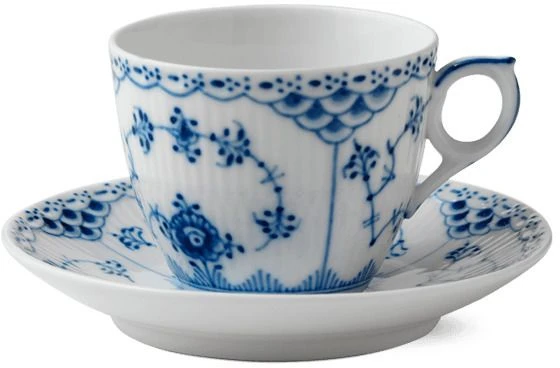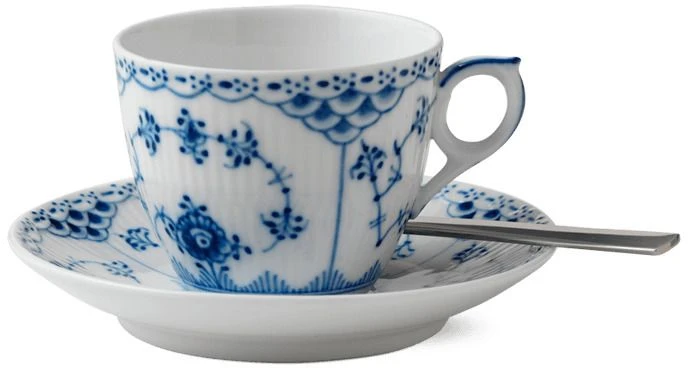 Musselmalet Halvblonde er indrammet af sin delikate halve blondekant, der fungerer som baggrund for det håndmalede mussel-mønster og de charmerende snegleskaller på lågene. En alsidig klassiker. Der skal 1.197 penselstrøg til – hverken mere eller mindre – at male en Musselmalet Halvblonde spisetallerken. Omhyggeligt håndværk og overdådig kunst har altid gået hånd i hånd.
