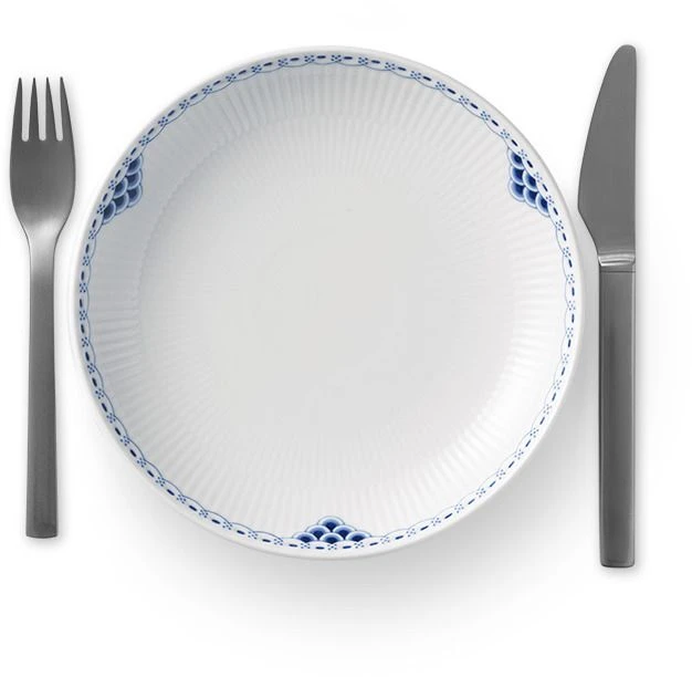 En klassiker fra det 19. århundrede, der er som skabt til vores tid. Kniplingeborten og de blå musseldekorationer på Prinsesse-stellet afslører dets tætte bånd til Royal Copenhagens musselmalede stel. Og det var faktisk også det, der i det 19. århundrede inspirerede Arnold Krog da han designede denne royale, klassiske serie af håndglaserede og håndmalede stel i en mesterlig, traditionel stil.