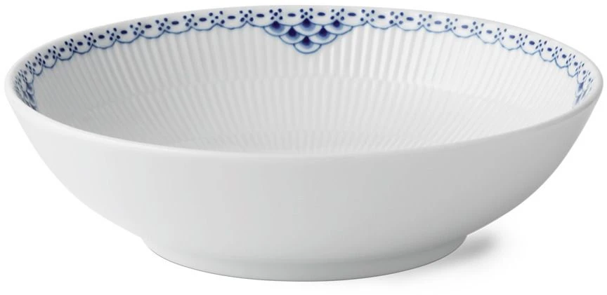 En klassiker fra det 19. århundrede, der er som skabt til vores tid. Kniplingeborten og de blå musseldekorationer på Prinsesse-stellet afslører dets tætte bånd til Royal Copenhagens musselmalede stel. Og det var faktisk også det, der i det 19. århundrede inspirerede Arnold Krog da han designede denne royale, klassiske serie af håndglaserede og håndmalede stel i en mesterlig, traditionel stil.