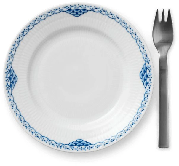 En klassiker fra det 19. århundrede, der er som skabt til vores tid. Kniplingeborten og de blå musseldekorationer på Prinsesse-stellet afslører dets tætte bånd til Royal Copenhagens musselmalede stel. Og det var faktisk også det, der i det 19. århundrede inspirerede Arnold Krog da han designede denne royale, klassiske serie af håndglaserede og håndmalede stel i en mesterlig, traditionel stil.