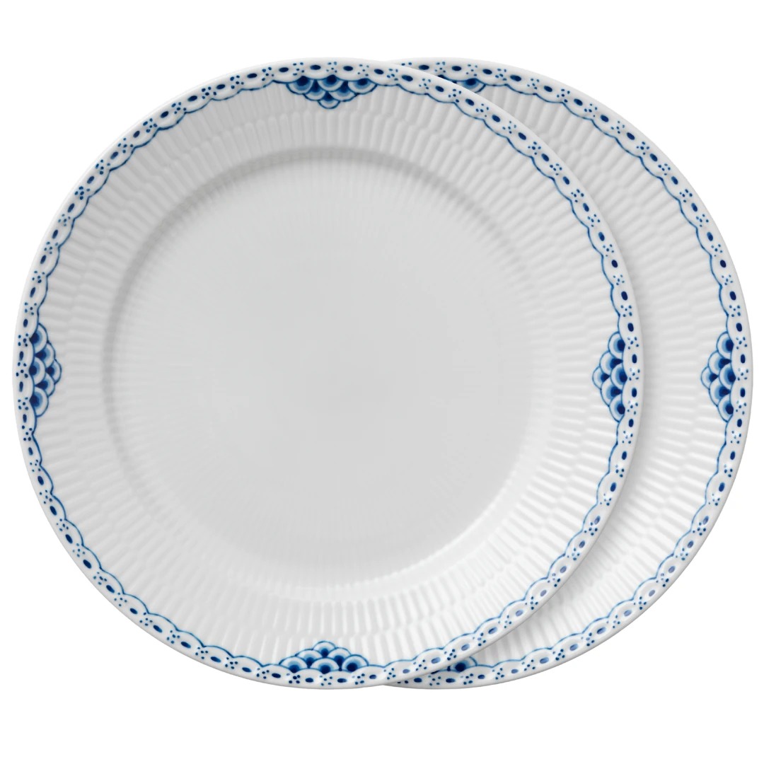 Dette smukke sæt af to Prinsesse Tallerkener er en evigt tidløs tilføjelse til, eller begyndelse på, en Royal Copenhagen samling. Tallerkenerne på 27 cm prydes af en håndmalet blonde, som giver et feminint udtryk i enhver borddækning. Tallerkenerne er nyttige som middagstallerkener eller serveringsfade.
