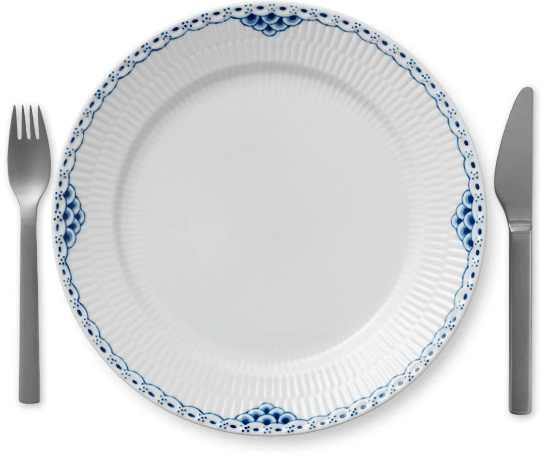 En klassiker fra det 19. århundrede, der er som skabt til vores tid. Kniplingeborten og de blå musseldekorationer på Prinsesse-stellet afslører dets tætte bånd til Royal Copenhagens musselmalede stel. Og det var faktisk også det, der i det 19. århundrede inspirerede Arnold Krog da han designede denne royale, klassiske serie af håndglaserede og håndmalede stel i en mesterlig, traditionel stil.