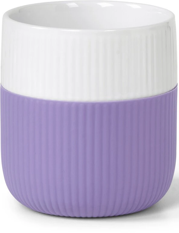 Den bløde lavendelfarve på dette Riflet Contrast krus er både elegant og moderne, og porcelænets diskret riflede overflade fortsætter på det bløde silikonehylster for et sømløst og ubesværet look.