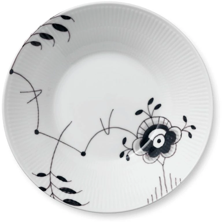Her er stellet, der er mere end porcelæn! Det er beviset på at selv de bedste traditioner kan holde til at blive udfordret. Det, der engang var kendt som småt og blåt, er nu også eftertragtet som stort og sort. Et samleobjekt for designelskere. Sort Mega Riflet bryder med det traditionelle blå og hvide univers, og de sorte penselstrøg på det hvide porcelæn skaber et skarpt, kontrastfyldt udtryk, der matcher moderne hjem. Sofistikeret, gennemtænkt og en lille smule rebelsk. Den dybe tallerken uden kant er elegant og enkel. Det Sort Mega Riflede mønster klæder tallerkenen og gør den til et smukt element på middags- eller morgenbordet.