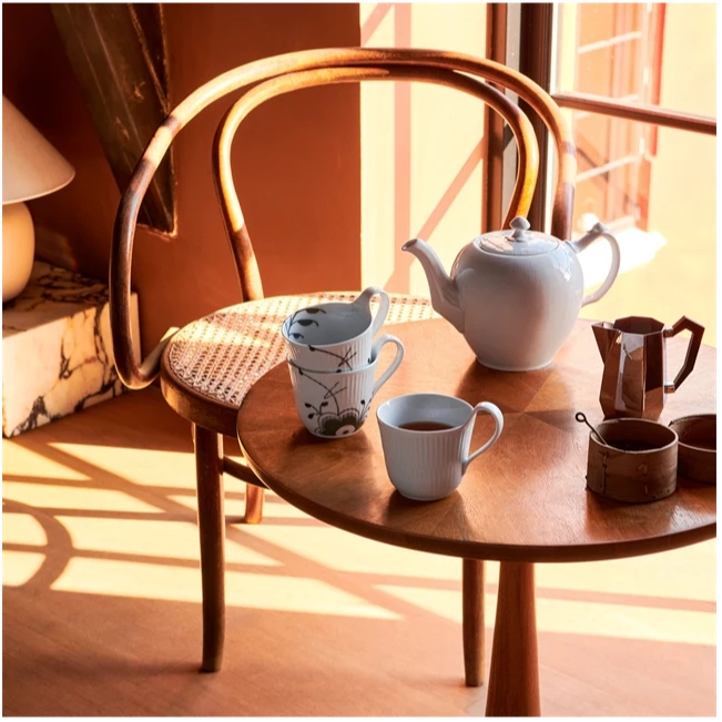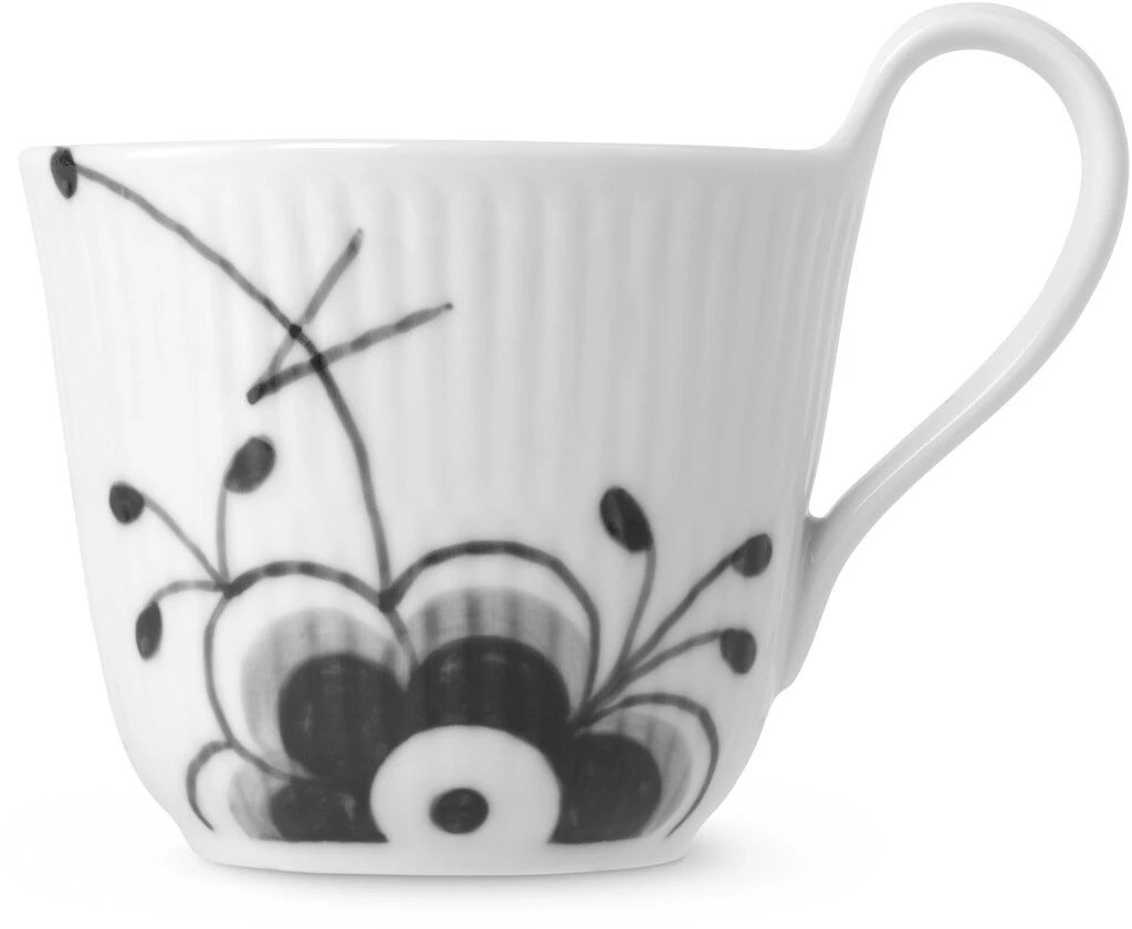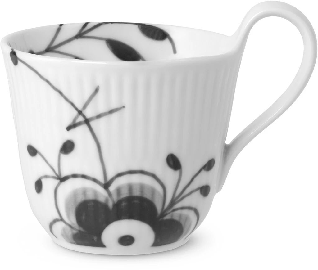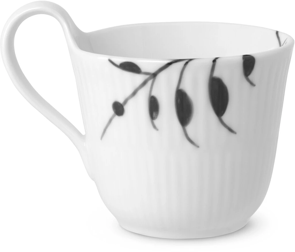 Nyd din yndlings varme drik i dette elegante Sort Mega Riflet Højhankskrus. Koppen er smukt håndmalet, og kruset med den høje hank er et ægte Royal Copenhagen-ikon.