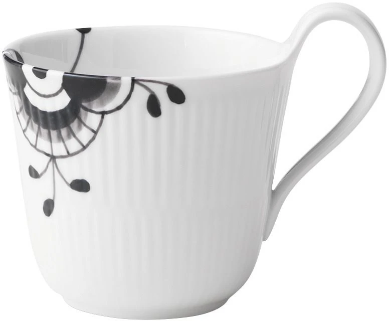 Her er stellet, der er mere end porcelæn! Det er beviset på at selv de bedste traditioner kan holde til at blive udfordret. Det, der engang var kendt som småt og blåt, er nu også eftertragtet som stort og sort. Et samleobjekt for designelskere. Sort Mega Riflet bryder med det traditionelle blå og hvide univers, og de sorte penselstrøg på det hvide porcelæn skaber et skarpt, kontrastfyldt udtryk, der matcher moderne hjem. Sofistikeret, gennemtænkt og en lille smule rebelsk. Denne smukke tekop i Sort Mega Riflet har en karakteristisk høj hank, der giver den elegance og kant.
