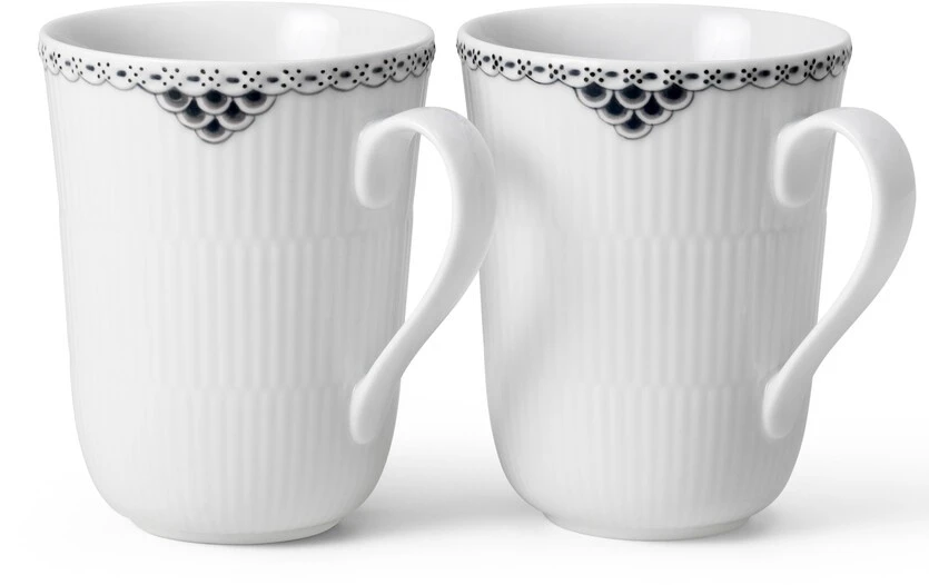 Højden af disse Sort Riflet Blonde krus tillader riflerne at strække sig langs overfladen af porcelænet, indtil de forsigtigt afbrydes af den sorte blondekant.