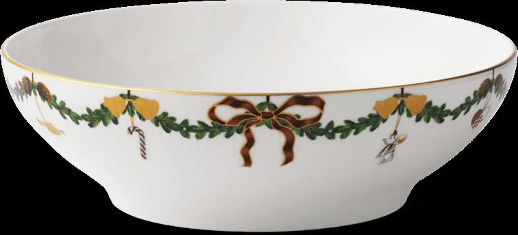 Blandt julens smukke traditioner hører julestellet fra Royal Copenhagen. På tallerkener, skåle og kopper snor granguirlanderne sig højtideligt, dekoreret med elegante silkesløjfer og det fineste pynt. Stjerne Riflet Jul skaber stemning og gør julen til noget helt særligt generation efter generation. Hver eneste steldel er et smukt stykke julepynt i sig selv, og når bordet står dækket og lysene er tændt, så bliver det helt sikkert jul igen.