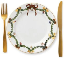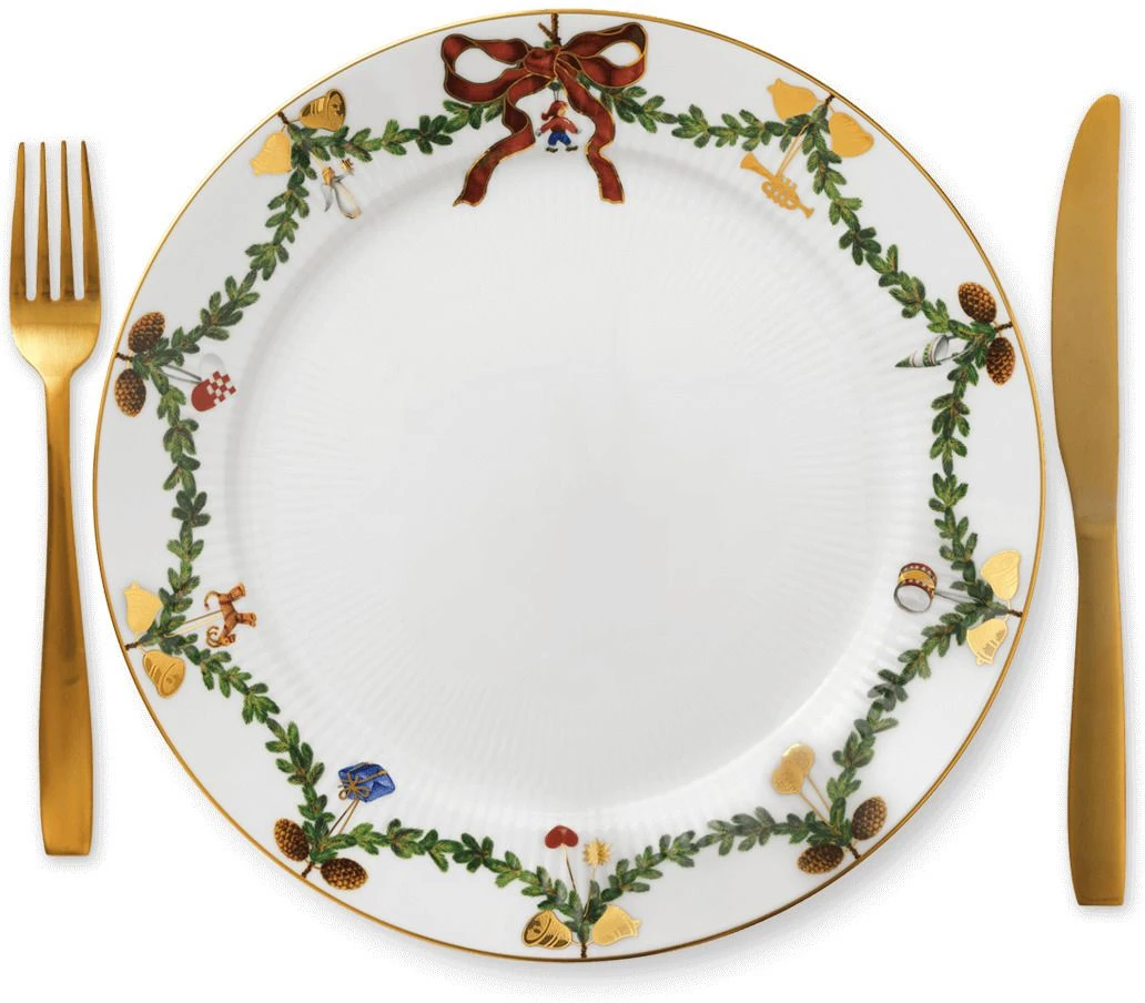 Blandt julens smukke traditioner hører julestellet fra Royal Copenhagen. På tallerkener, skåle og kopper snor granguirlanderne sig højtideligt, dekoreret med elegante silkesløjfer og det fineste pynt. Stjerne Riflet Jul skaber stemning og gør julen til noget helt særligt – generation efter generation. Hver eneste steldel er et smukt stykke julepynt i sig selv, og når bordet står dækket og lysene er tændt, så bliver det helt sikkert jul igen.